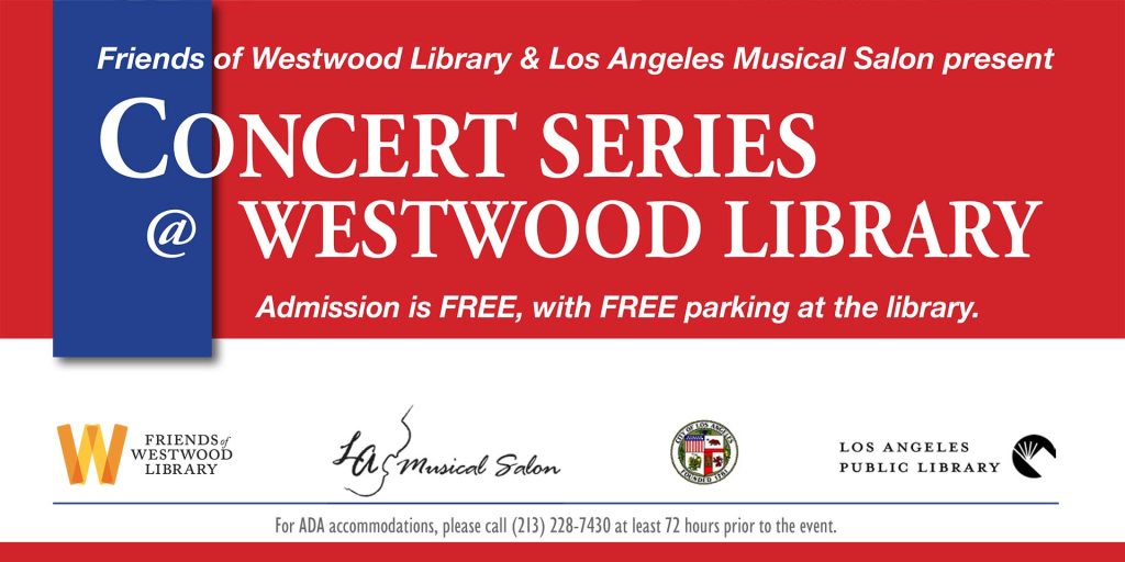 The Friends of Westwood Library and Los Angeles Musical Salon are thrilled to announce that our much beloved FREE Concert Series @ Westwood Library is back, after being suspended for…